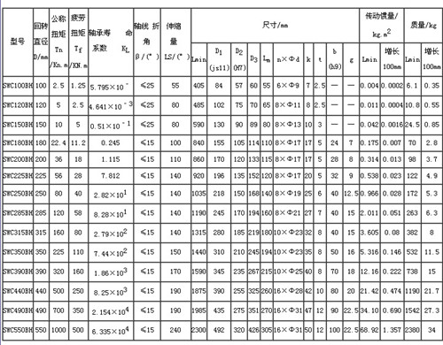 SWC-BH型萬向聯(lián)軸器規(guī)格
