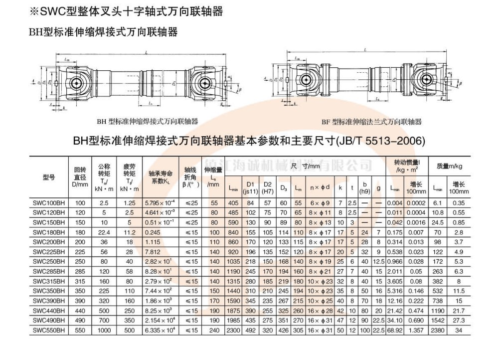 SWC型十字軸式萬向聯(lián)軸器種類型號居多,具體規(guī)格型號有: