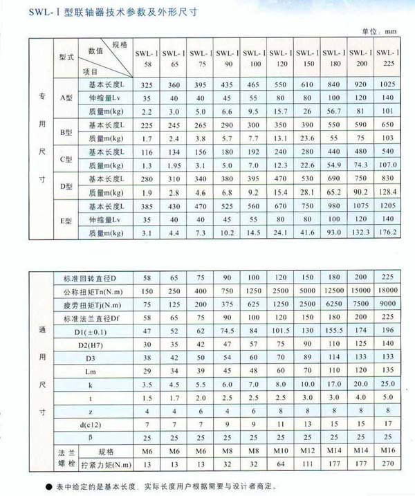 SWL-II重型十字萬(wàn)向聯(lián)軸器 回轉(zhuǎn)直徑:160~620mm,公稱扭矩:18~1120KN.m,疲勞扭矩:9~560KN.m