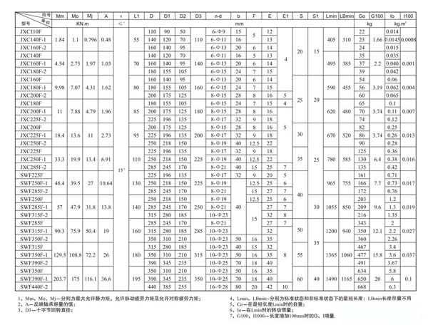 JXC SWF系列萬向聯(lián)軸器(起重機(jī)多用):回轉(zhuǎn)直徑:225-620mm,公稱扭矩:50-1120KN.M,疲勞扭矩:25-560KN.m